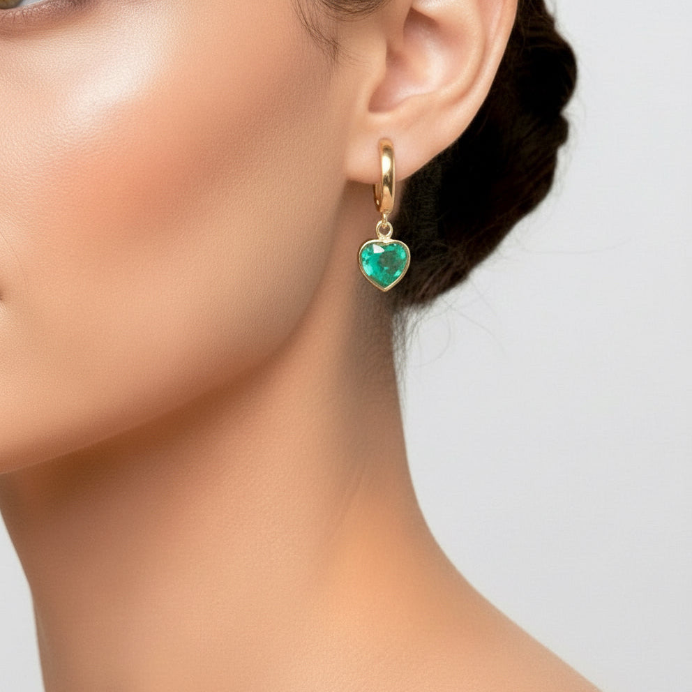 Heart Shape Colombian Emerald 18 Karat Yellow Gold Dangle Earrings