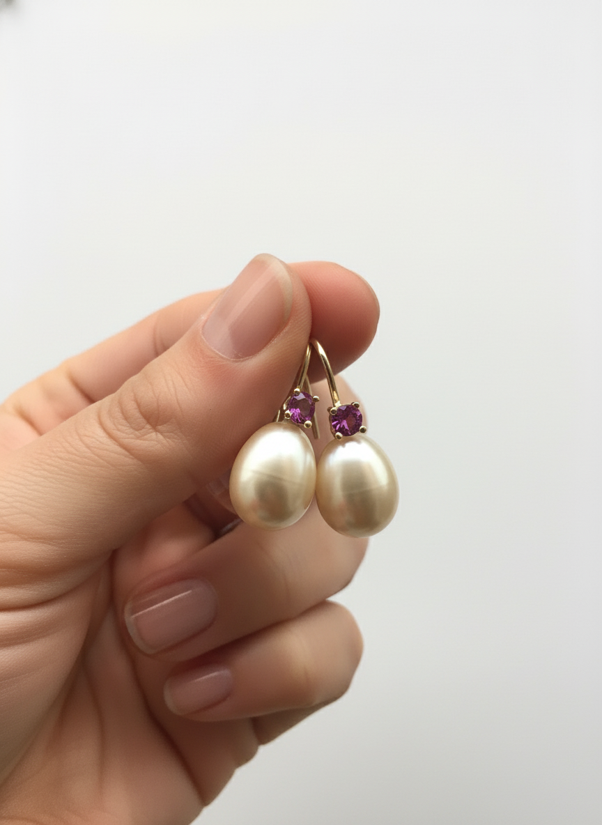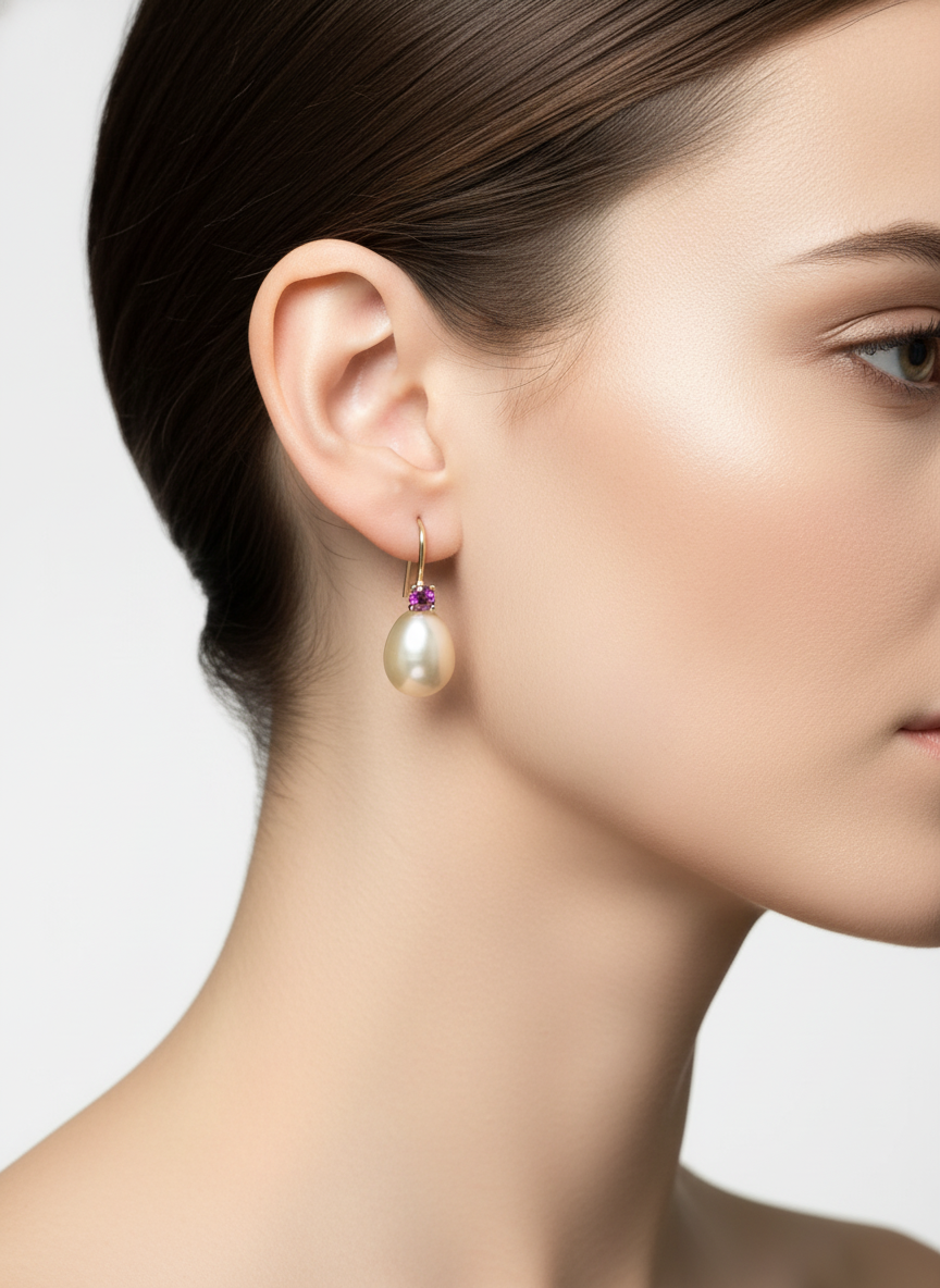 Australian Pearl Earrings with Ruby 14 Karat Yellow Gold