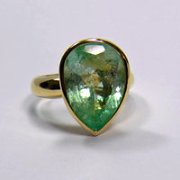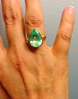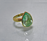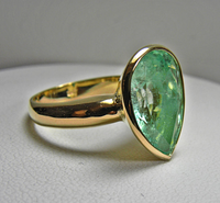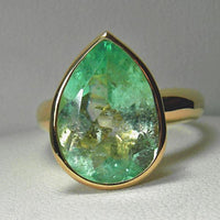 4.50cts Pear Cut 100% Natural Light Green Colombian Emerald Solitaire Ring 18K