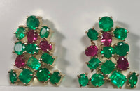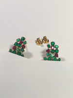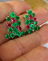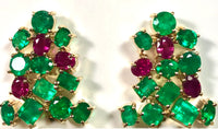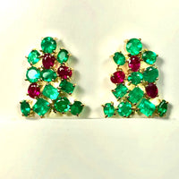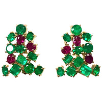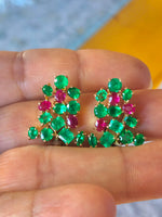 Fine Colombian Emerald and Ruby Statement Stud Earrings Set in 18K Yellow Gold.