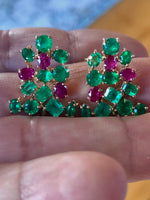 6.50 Carat Fine Colombian Emerald Ruby Stud Earrings 18K Yellow Gold