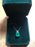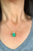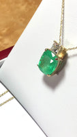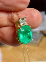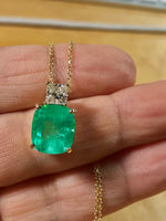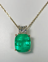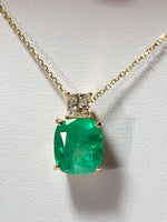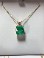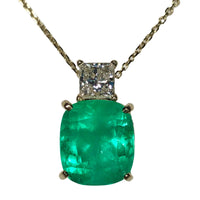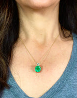 7.00 Carat Cushion Natural Emerald and Diamond 18k Yellow Gold Pendant Necklace