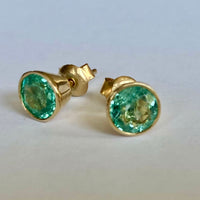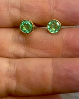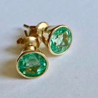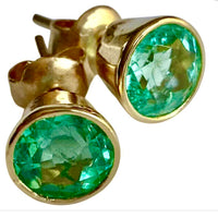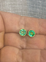 Round Colombian Emerald Stud Earrings 2.00 Carat 18K Gold