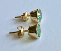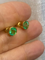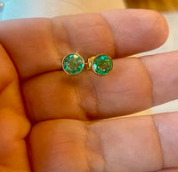Stylish and Classic Colombian Emerald Stud Earrings Round Cut Total Weight 2.00 Carats. Natural Colombian Medium Green Color, VS in Clarity! Made of Solid 18K Yellow Gold 2.0g, Push Backs Bezel Set Condition: New