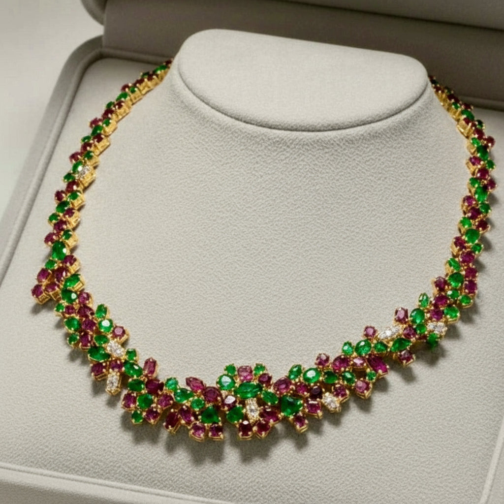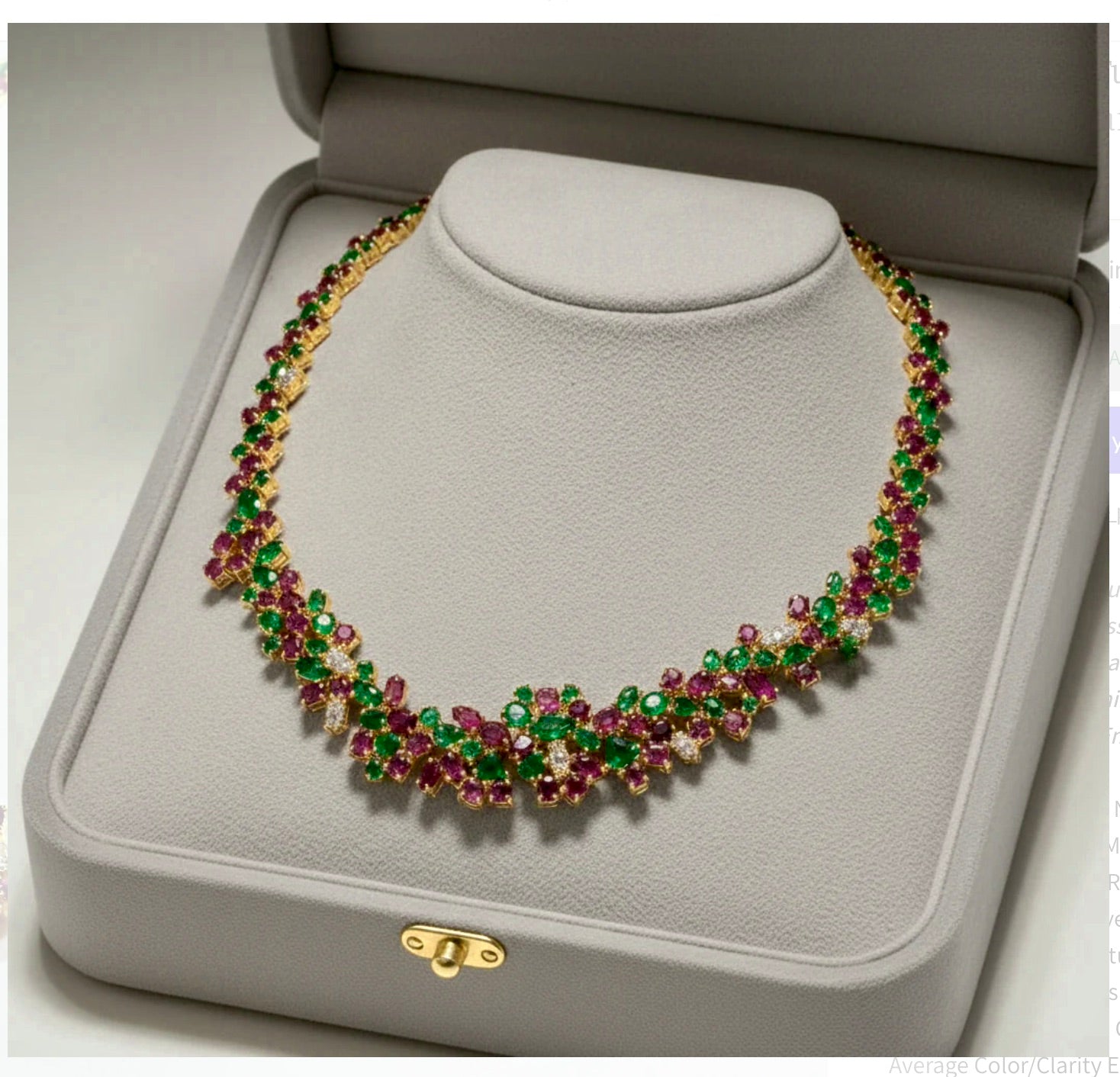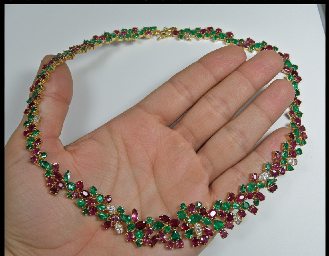 61.00ct Fine "Tutti Frutti" Ruby Emerald & Diamond Necklac 18 Karat
