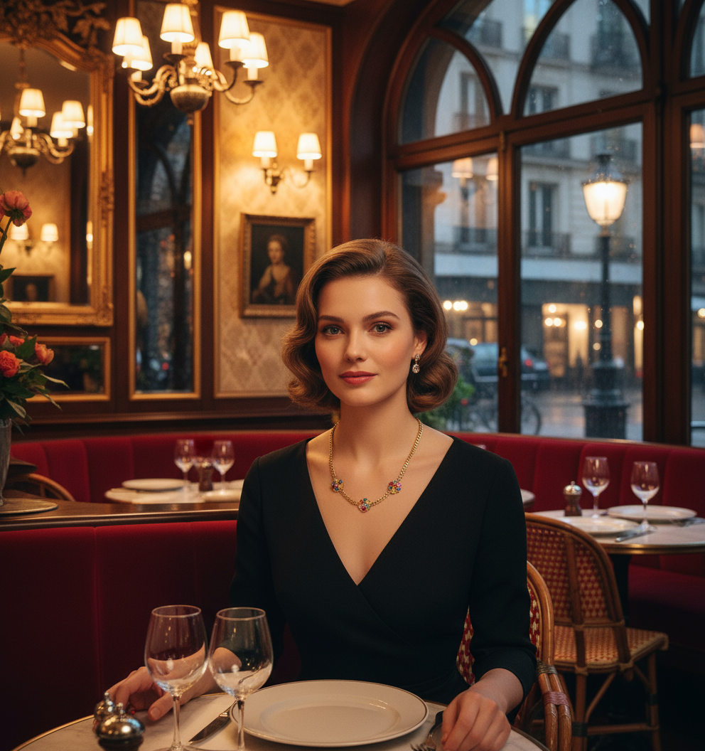 18K Yellow Gold Sapphire Cluster "Fleurette" Station Necklace