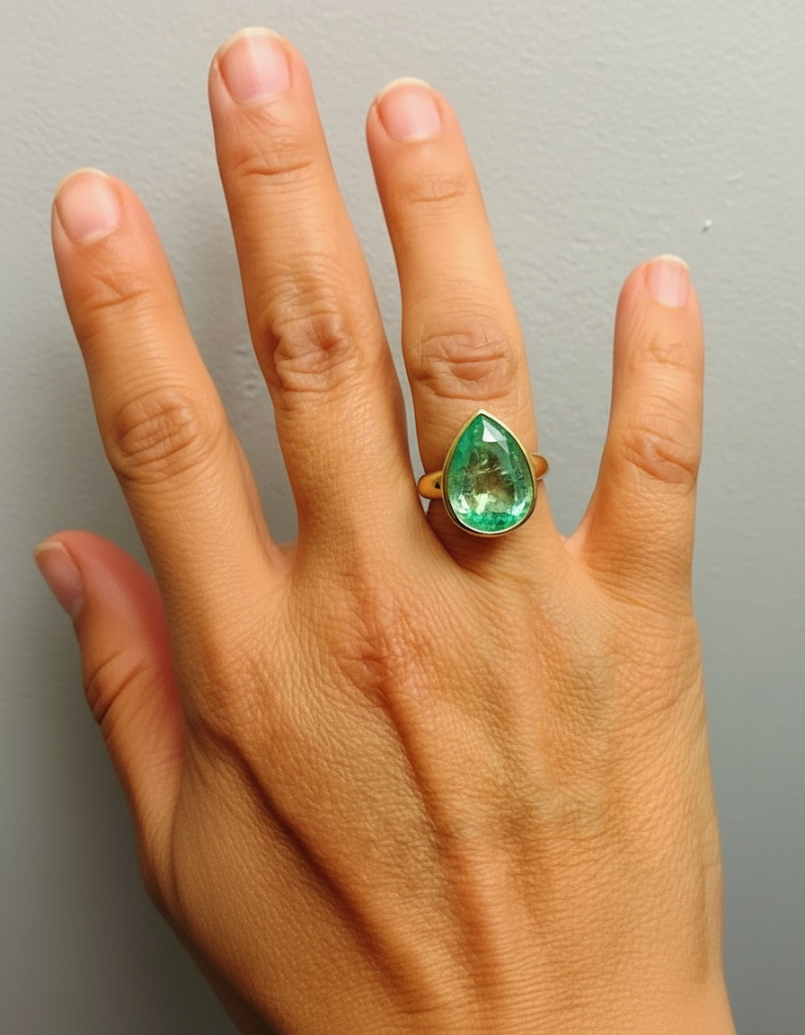 4.50cts Pear Cut 100% Natural Light Green Colombian Emerald Solitaire Ring 18K