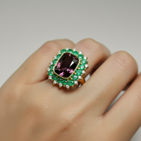 7.55 Carats Fine Spinel, AAA Colombian Emerald and Diamond Cocktail Ring 18K Gold