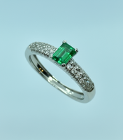 A Fine Natural Colombian Emerald Pave Diamond Engagement Ring 18K White Gold Center High Quality Natural Colombian Emerald, Emerald Cut 0.50 Carat , Vivid Medium intense Green Side Natural Micro pave set Diamonds 0.40 Carat, Clarity VS, Color F.