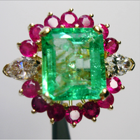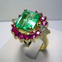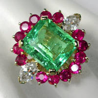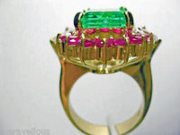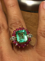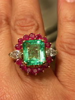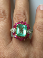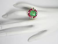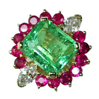 7.14ct EGL USA Certified Emerald Diamond & Ruby Cluster Cocktail Ring 18k