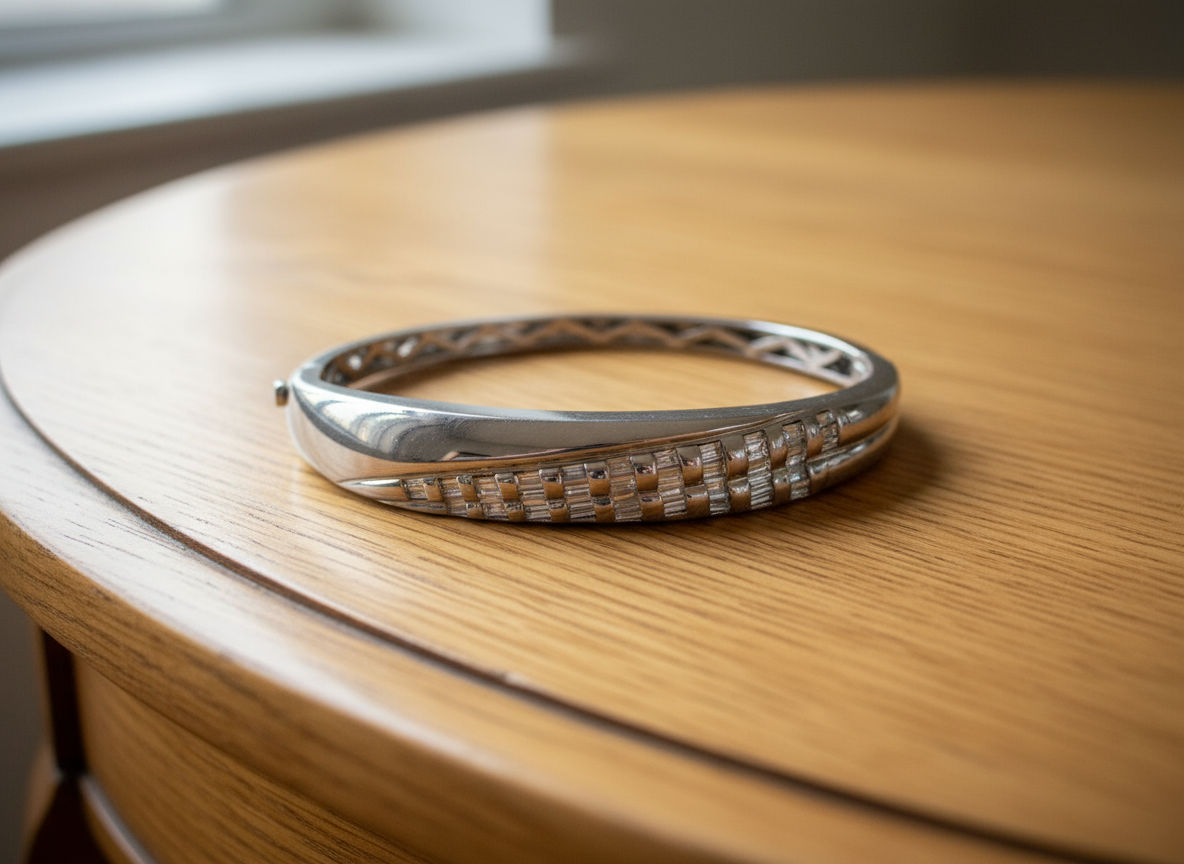 Diamond Baguette Hinged Cuff Bracelet 18K White Gold 36.3g
