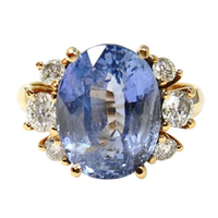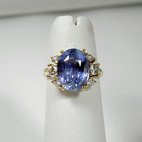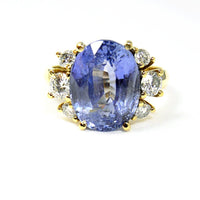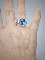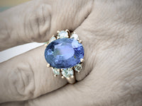 Certified Unheated 10.80 Carat Periwinkle Blue Sapphire Diamond 18K Gold Ring
