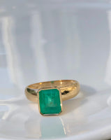 A stunning Natural Colombian Emerald with a nice brilliance, makes it a true classic emerald solitaire ring