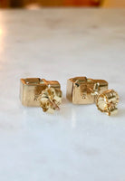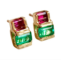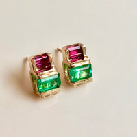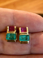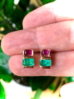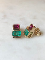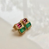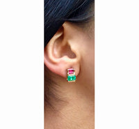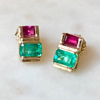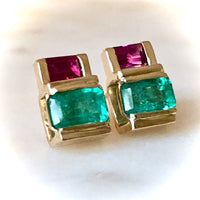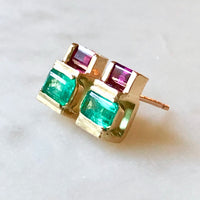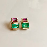 This elegant and contemporary pair of Emerald Ruby stud earrings features: